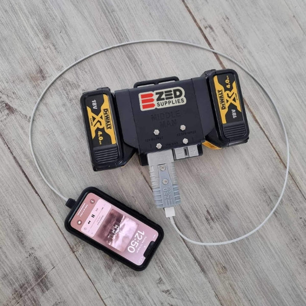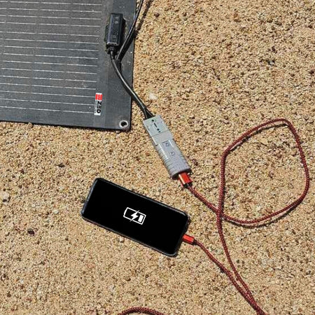 The ZED Anderson to USB Fast Charge Adapter lets you power and charge phones, tablets, cameras, lights, and other USB devices directly from any 12–24 V Anderson power source — including ZED’s Middle Man, Battle Station, and Power Plate battery adapters.