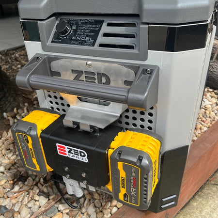 The ZED Engel Fridge Hook allows you to mount your ZED Middle Man Battery Adapter directly onto Engel MT & MT-V 32 L / 38 L / 39 L / 40 L fridges — with or without a transit bag and from interfearing on the carry handle.