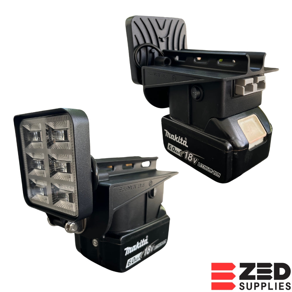 The ZED Universal 12 V Power Plate turns your Milwaukee M18, Makita LXT, or DeWALT 18V / 20V batteries into a portable 12 V power and lighting solution for job sites, 4WD vehicle setups, camping, shed/huts, custom applications, back up use, and more.